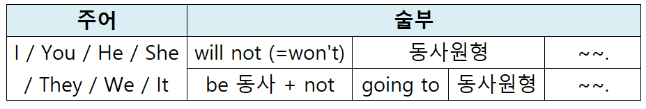[2] be not going to / will not 뒤에는 항상 동사원형을 사용합니다.