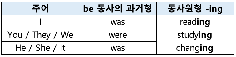 - 과거 진행 시제 긍정문의 형태