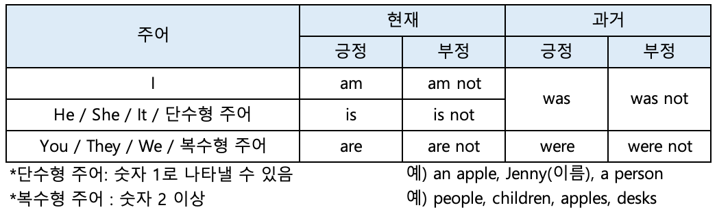 주어에 따라 정확한 be 동사를 사용하는 것이 중요하다.