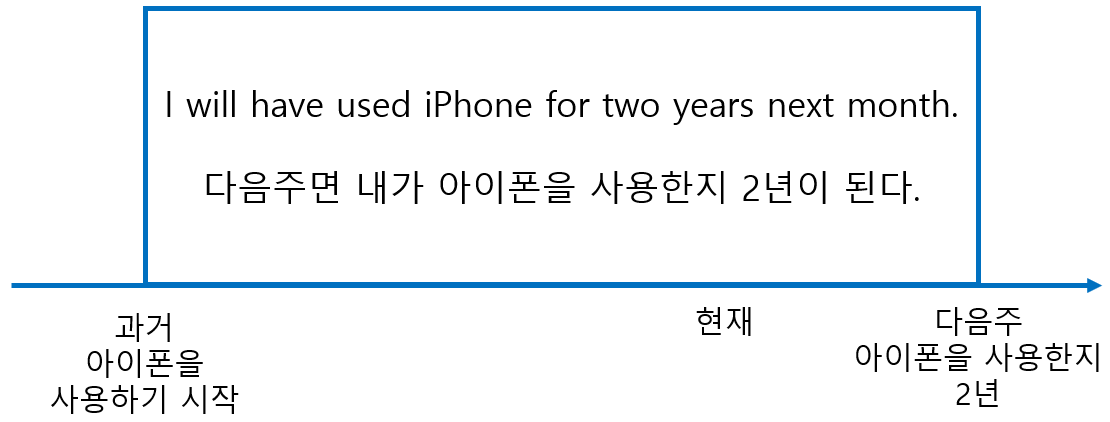[1] 과거로 부터 시작한 일이 미래의 어느 시점까지 영향을 미치는 상황을 표현